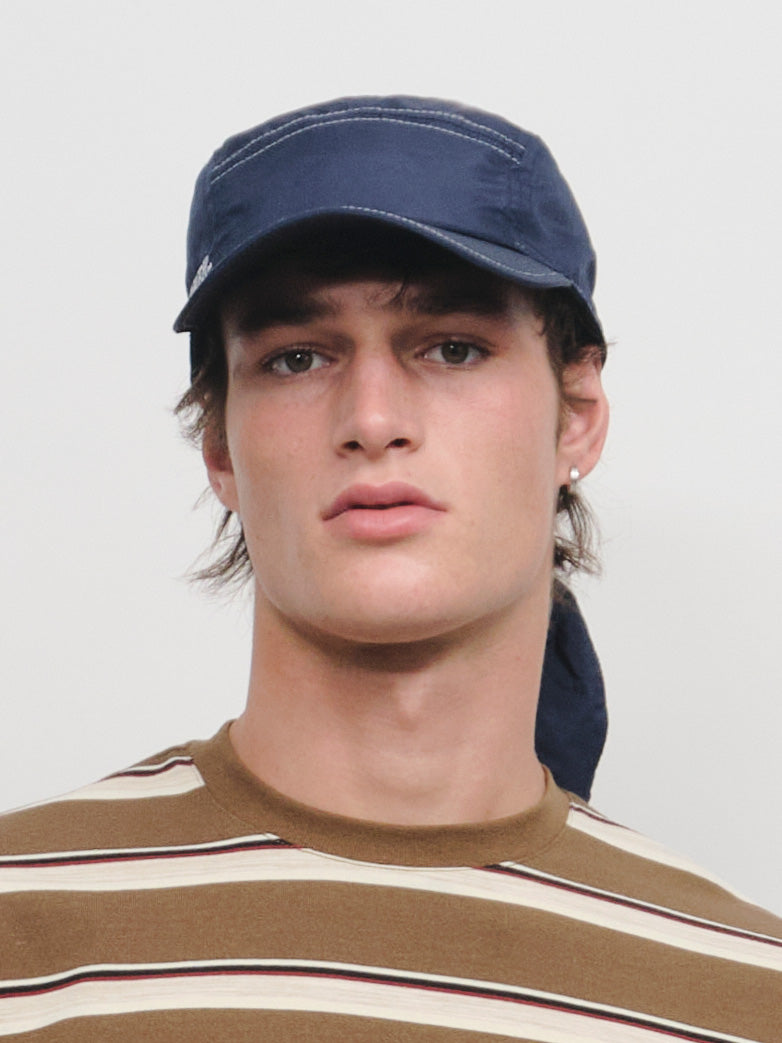 A contemporary twist of our iconic mica cap. Made of a very lightwight fabric and tied with a backnot.