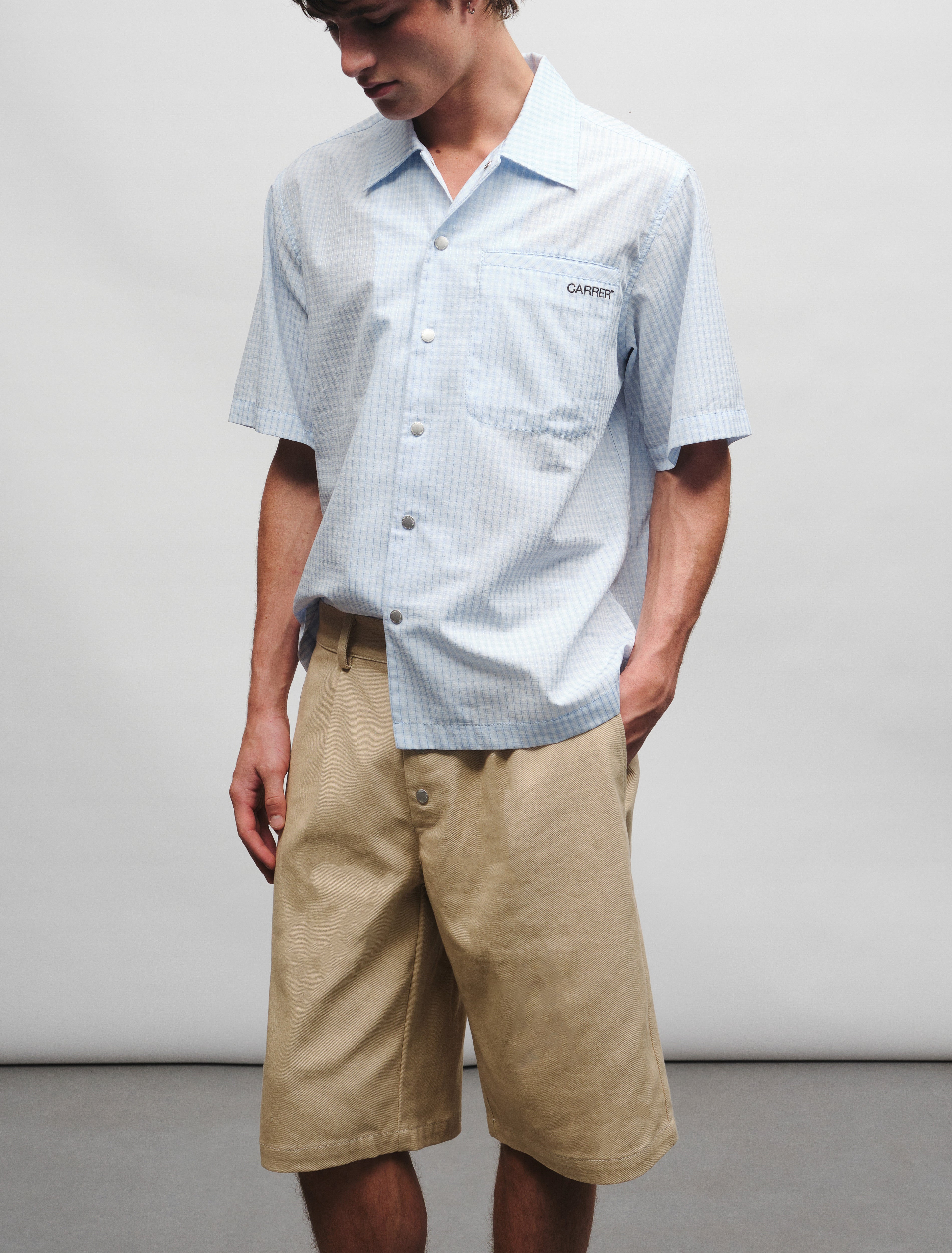 Our new classic short-sleeve summer shirt. Crafted in checked cotton, it offers a regular fit with a slightly cropped length. Finished with visible metallic snaps and a logo embroidered on the chest pocket.