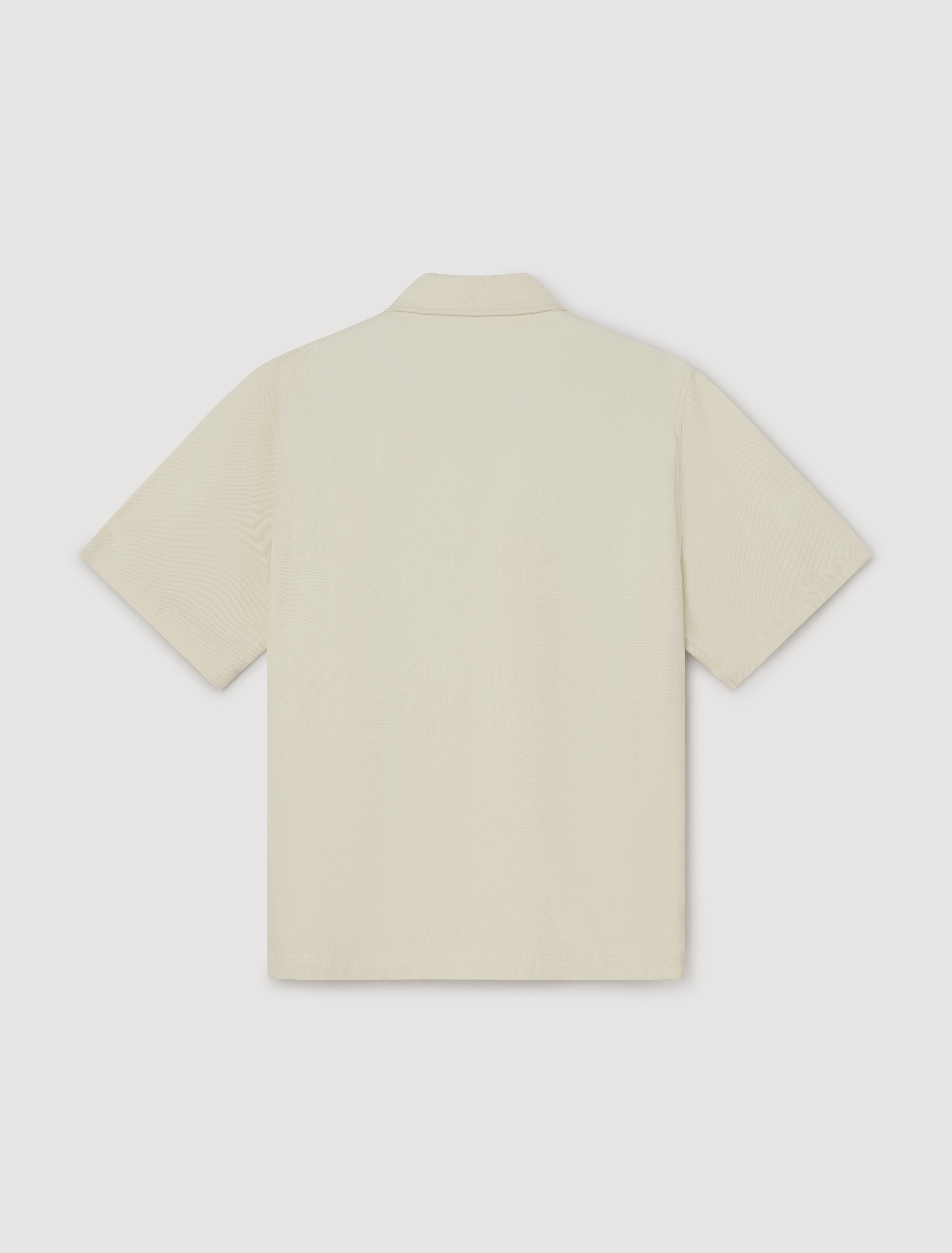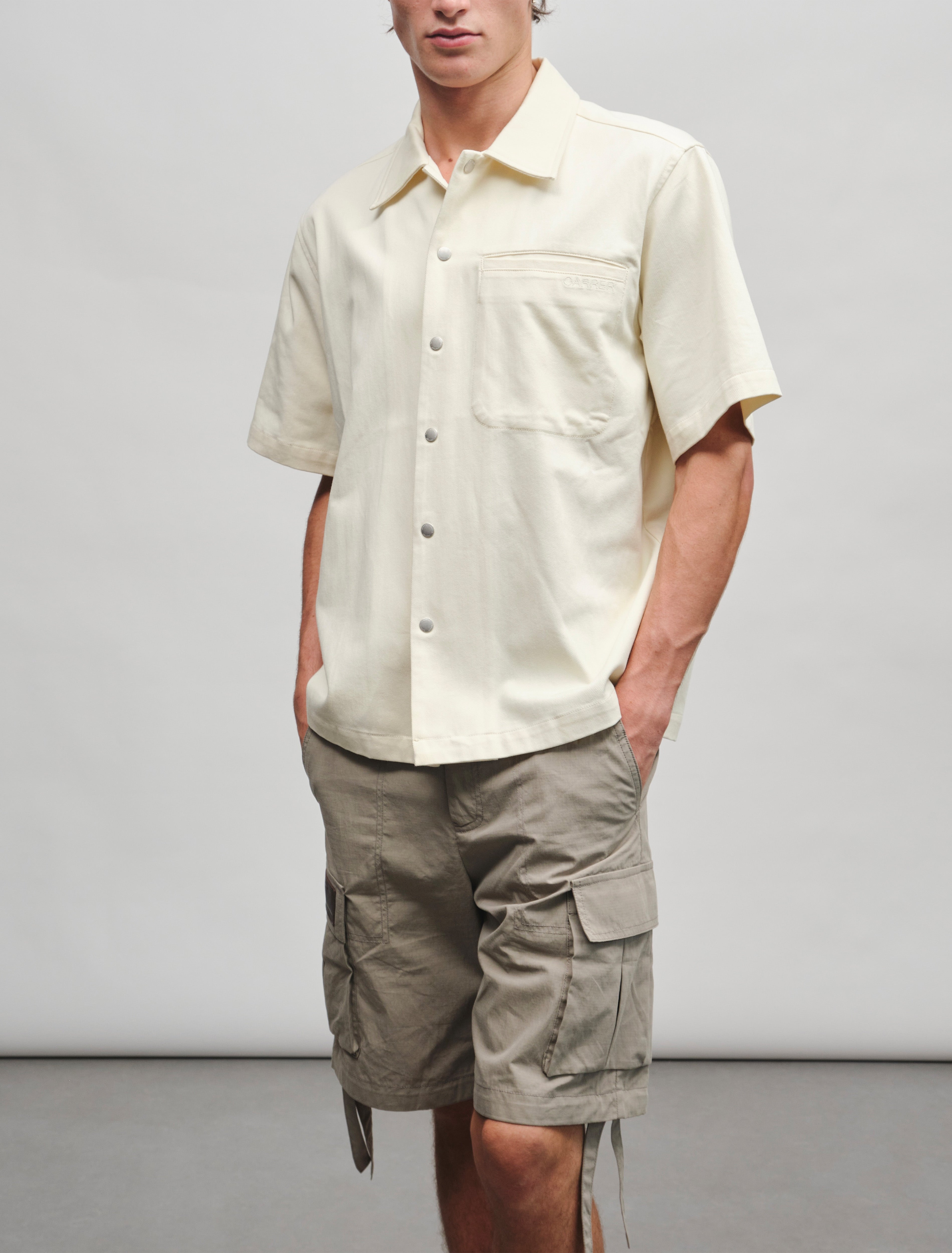 A reworked sleeveless overshirt for summer, crafted in 100% cotton twill. It features our signature metallic snap buttons and a logo embroidered on the chest pocket. Designed for easy layering over summer staples.
